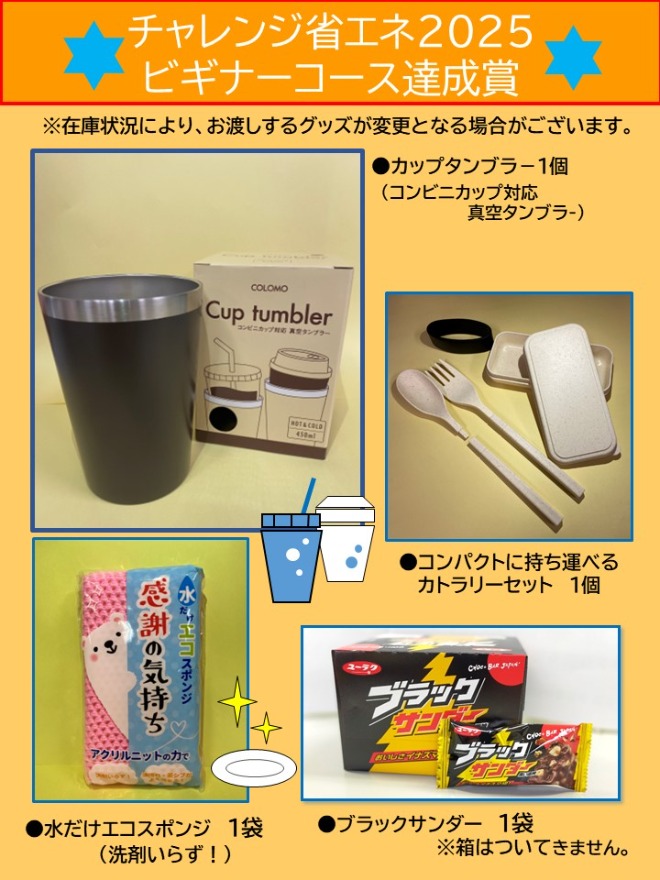 以下の目標を達成した方に省エネグッズをプレゼントします。(各コース先着30名)