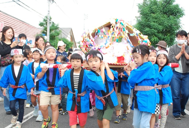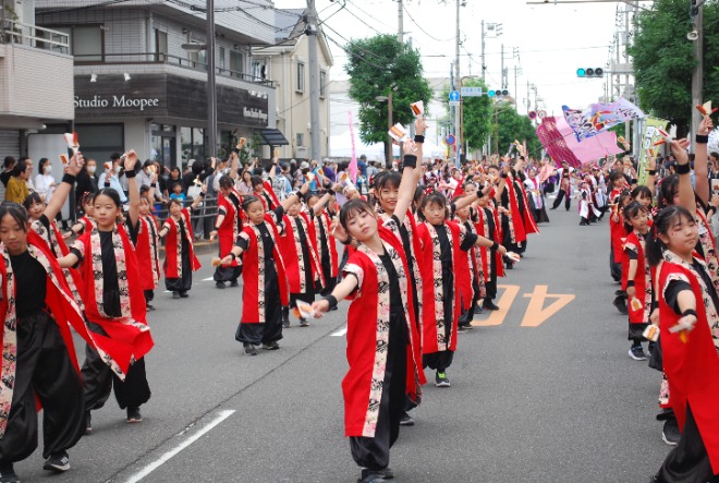 力を合わせて作った子どもみこしが元気よく出発し、小平よさこい、ダンスパレードと続きます。