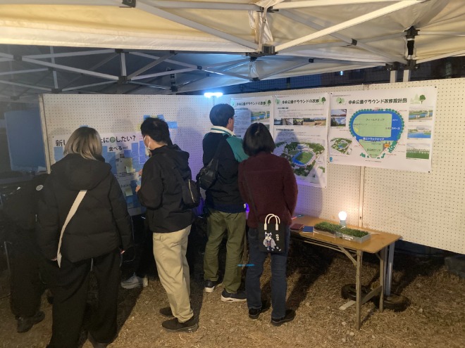 当日はパネル展示だけでなく、改修後のグラウンドでも行えるスポーツ〈スラックライン〉の体験コーナーや【中央公園グラウンドでなにがしたい?投票】を実施し、大変多くの市民の方々に足を運んでいただきました。当日ご参加された皆様、誠にありがとうございました。