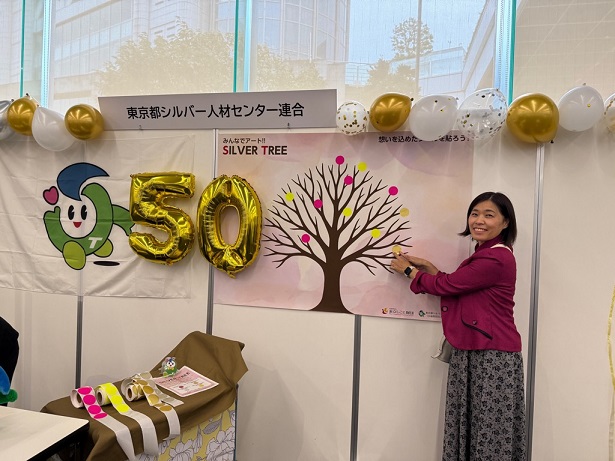 公益財団法人東京しごと財団主催の東京シルバー人材センター創設50周年記念式典が開催されました。東京都内の58センターが一堂に集結し、センターの日頃の活動の紹介や会員さんが作成した手作小物などの販売会が行われていました。創設50周年、誠におめでとうございます。