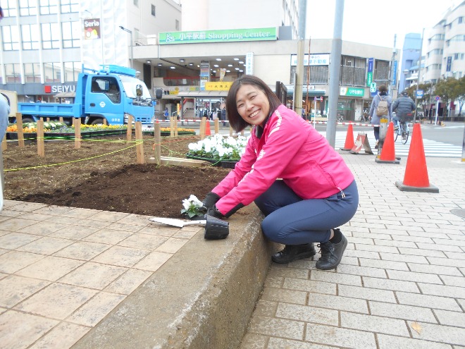 令和7年11月13日(木曜)に、小平市園芸組合にご協力いただき、小平駅南口ロータリー植栽部で花植え活動を実施しました。