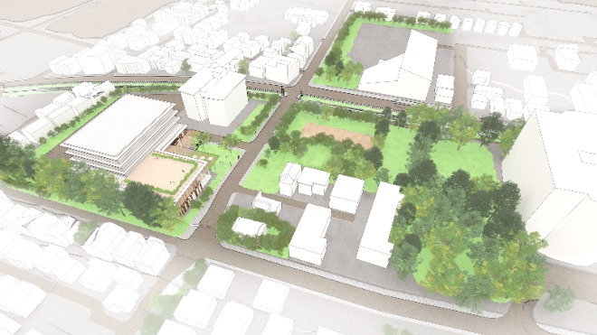 そして、隈研吾氏のデザインによる中央エリア(福祉会館周辺)の再編成。