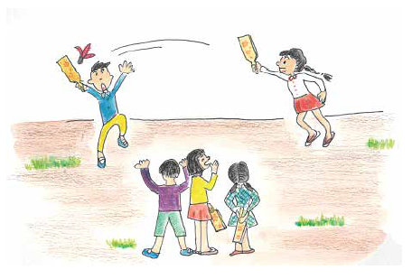 羽根つきは、一人で何回つけるか数えたり、二人で羽根を打ち合ったりして遊んだね。