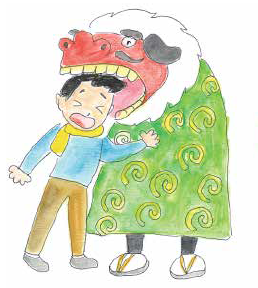 それから小正月の十五日ぐらいまでは、獅子舞などが家々を毎年まわってきて、おもしろかったの。獅子舞のお獅子に、頭をかんでもらうと厄除けになるっていうので、ちょっと怖かったけど、おそるおそる頭を近づけて、かんでもらったの。